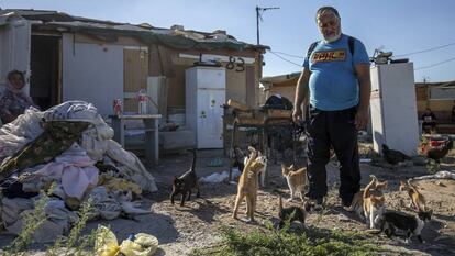 Aquello, añade, le hizo caer en un estado de depresión del que le costó salir. Al volver aquí, dormía todo el día, comía de forma errática, no tomaba la medicación que le habían prescrito. Asegura que encontró serenidad y consuelo en la primera gata que se le acercó un día en el poblado, por casualidad. No le puso nombre, ni falta que le hizo para quererla. De esa gata descienden cinco generaciones que, como las chabolas, tienen los días contados en el lugar.