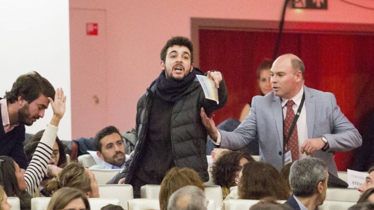 Adrià Carrasco se sentó en la penúltima fila del auditorio del Museo de Bellas Artes de Bruselas y esperó unos minutos. El ministro de Exteriores, Josep Borrell, participaba en la tarde de este miércoles en un acto para conmemorar en el 40 aniversario de la Constitución organizado por Societat Civil Catalana y el Real Instituto Elcano. Carrasco, miembro de los denominados Comités de Defensa de la República huido a Bruselas, se presentó en el evento discretamente, y cuando Borrell llevaba unos pocos minutos de intervención y le escuchó decir desde el atril "se ha tenido que aplicar el artículo 155 a una comunidad autónoma, cosa prevista pero que se pensaba que nunca habría que hacerlo", se puso en pie e interrumpió el acto. "La Constitución es una puta farsa", gritó antes de que la seguridad lo expulsara de la sala.