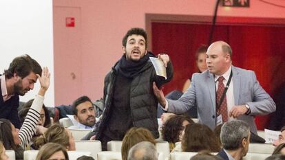 Adrià Carrasco grita "la Constitución es una puta farsa" durante el discurso del ministro