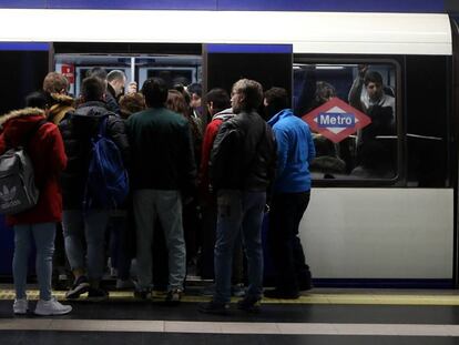 El Sindicato de Maquinistas de Metro de Madrid continúa este sábado con los paros parciales convocados desde el pasado diciembre y que tienen pensado prolongar hasta marzo. Las líneas afectadas son la 1, 3, 5, 7A, 9A y 11 en las que se establecerán unos servicios mínimos del 53%. "Tan solo se regodean del récord de viajeros conseguidos en el último año sin mencionar que también ha habido récord de aglomeraciones, de concentraciones de trabajadores, de amianto, de falta de trenes, de falta de maquinistas y de faltas al convenio", sostiene el Sindicato de Maquinistas en un comunicado. Ya ha habido diez jornadas de huelga convocadas desde diciembre y durante las Navidades, según indicaba un documento al que tuvo acceso EL PAÍS, se ha registrado una disminución en el número de trenes pese a un aumento del volumen de viajeros.