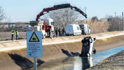 El coche, un Volvo de color blanco, fue localizado en el canal de Serós, en la zona de Albatàrrec, donde se encuentra el local La Manolita, en el que estuvo la profesora antes de desaparecer. La señal de móvil de la víctima se perdió a 500 metros de la discoteca. La policía investiga ahora si se trata de un accidente de tráfico, y en qué punto del canal habría caído el coche, que podría haber sido arrastrado por la corriente.