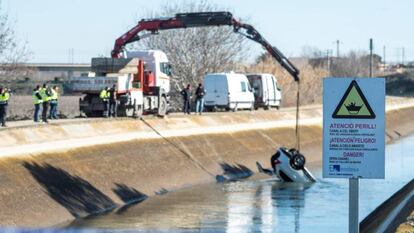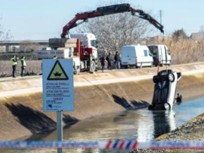 La unidad subacuática de los Mossos ha coordinado este lunes la recuperación del coche del canal, que fue localizado el domingo sobre las cinco de la tarde tras una intensa búsqueda en la que participaron durante todo el día vecinos de pueblos de Les Garrigues y el Segrià.