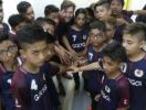 En mitad de un grupo de novatos (infantiles de entre 13 y 14 años) llegados hace apenas un par de meses, Rubén de la Red se afana en explicarse a través del lenguaje más universal: gestos y ejemplos. “¡Levantad la cabeza! ¡Dad los pases tensos!”, grita, y acto seguido otea el panorama y clava un pase de 30 metros en el pie de uno de sus pupilos. Lección aprendida. Los jóvenes jugadores del Guangzhou se pasarán la siguiente hora y media sometidos a ejercicios de pase y control de máxima intensidad.