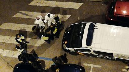 El número de agentes aumentó la tarde del jueves, cuando los policías del grupo V de Homicidios consiguieron una orden de entrada y registro en la vivienda. Su morador no estaba, por lo que actuaron de testigos un hombre que también tenía otra habitación alquilada y una vecina del portal número 3, Nieves Ramírez. “Volvía a casa cuando me dijo la policía que pasara a la vivienda, que yo tenía que estar dentro. Yo no llegué a entrar en la habitación. Me quedé en el salón unas tres horas hasta que les dije que era medianoche y que quería irme”, recuerda Ramírez.