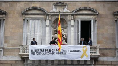 La Junta Electoral central ha dado un plazo máximo de 48 horas al presidente del Govern, Quim Torra, para que ordene la retirada de las "esteladas" y lazos amarillos que puedan encontrarse en los edificios públicos dependientes de la Generalitat. Así consta en el acuerdo que la Junta Electoral ha adoptado este lunes en respuesta a una reclamación presentada por Ciudadanos, en la que protesta por la exhibición de "símbolos ideológicos o partidistas en edificios y espacios públicos".