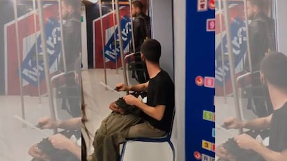 Un usuario de Metro de Madrid alertó la semana pasada a la empresa, a través de las redes sociales, con un vídeo grabado en sus instalaciones en el que se ve a un individuo con pantalón verde y camisa negra afilando un cuchillo de grandes dimensiones en un vagón en circulación. Las imágenes han sido grabadas en la línea 10 de Metro y las ha adelantado Telemadrid. Tras un análisis de las imágenes, la compañía ha identificado al joven y ha asegurado que "no se vivió ningún momento de pánico" y nadie se acercó en el momento al personal del suburbano para alertar de lo sucedido.