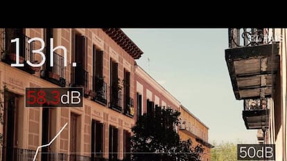 Lo peor son los picos. A las 23.34 el medidor de ruido marca 93 decibelios cuando pasa el camión de la basura del Ayuntamiento; a la 1.40 se mantiene en torno a los 75 decibelios durante unos minutos cuando un joven se pone a tocar la guitarra bajo el balcón; a las 3.22 una chica da un grito y marca 82 decibelios… “Siempre es igual. Gritan como si estuvieran rajando vivo a alguien”, dice Jimena, una trabajadora social de 37 años, echando un vistazo a la calle desde el balcón de su apartamento, un primer piso. “¿Qué necesidad tienen?”