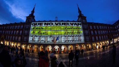 Ahora, la formación conservadora presenta dos reclamaciones ante la JEC. En una pide a este organismo que reclame al Ayuntamiento de Madrid el expediente que recoge la tramitación del permiso para proyectar esas imágenes en la Plaza Mayor de la capital, y que incoe expediente sancionador a Podemos por impulsarlo. Fuentes jurídicas consultadas por este diario opinan que los integrantes del ente que vela por la limpieza de las elecciones probablemente se inhiban en favor de la Junta electoral provincial.