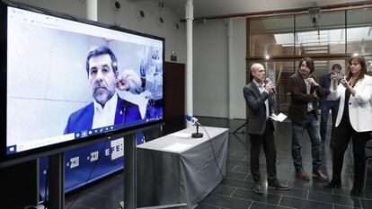El candidato de Junts per Catalunya da una rueda de prensa por primera vez desde que está encarcelado, autorizado por la Junta Electoral