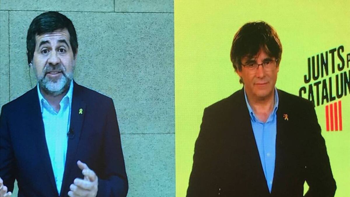 Carles Puigdemont y Jordi Sànchez no se veían cara a cara desde octubre de 2017, cuando el primero se fue a Bélgica tras declarar la independencia, y el segundo entró en la cárcel por su participación en el referéndum ilegal del 1 de octubre. Entonces, Puigdemont era presidente de la Generalitat, y Sánchez presidente de la Assemblea Nacional Catalana (ANC). Este lunes, ahora como dirigentes de Junts per Catalunya, han mantenido una conversación por videoconferencia durante un acto de campaña, el primer encuentro (virtual), después de un año y medio de cárcel. El acto, que ha contado con altas dosis de emotividad, ha sido posible por la autorización de la Junta Electoral Central a la participación de Sànchez desde la cárcel de Soto del Real.