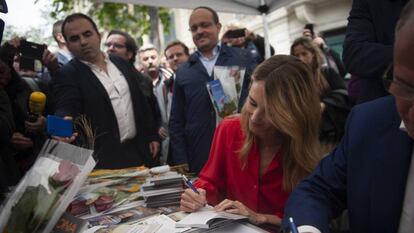 Y en la esquina de Rambla de Catalunya con Gran Via, la candidata del PP, Cayetana Álvarez de Toledo, firmaba y regalaba ejemplares de la Constitución. “Por una España de ciudadanos libres e iguales. Con afecto, Cayetana”, se leía en uno. Rosas y panes de Sant Jordi eran otros obsequios en la caseta popular en la que también firmaba Josep Bou, candidato del PP al Ayuntamiento de Barcelona, ejemplares de su libro Barcelona es España.