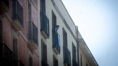 Salta a la vista, por detalles como toallas colgadas en los balcones, que está habitado. Lo llamativo es la actitud, vigilante y de pocos amigos, de quienes entran y salen. Ayer, a media mañana llegaba una mujer arrastrando dos maletones acompañada de dos hombres. A la pregunta de “¿vive aquí?” apresuró el paso y se metió en el portal.