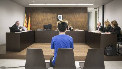 Kanghua luce mechas de color amarillo sobre un voluminoso tupé. Lleva una camiseta de fútbol azul del Collblanc —un barrio de L'Hospitalet— y unas bambas de un verde eléctrico. Observa los vídeos mientras se balancea adelante y atrás. Le preguntan también por otros retos en los que ofrecía bocadillos rellenos de excrementos de gato a niños y ancianos. "¡Era en plan de broma! Además, no se los comieron", sigue. Otra abogada le lanza una reprimenda más moral que penal. "Estos vídeos, ¿le hacían más gracia antes o ahora?" Kanghua no sabe o finge que no saber qué responder.