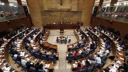 Primer acto de Vox en la Asamblea de Madrid. Así anunció este martes el diputado del partido de ultraderecha Jaime de Berenguer lo que hicieron al llegar al despacho del vicepresidente tercero que antes ocupaba Podemos y que tras la votación de la Mesa, será del partido de Santiago Abascal. En un vídeo, mostró cómo cambiaban un cuadro en la oficina. De una lámina en la que se leía, sobre un interrogante rojo, “todos somos iguales ante la ley”, a un retrato del rey Felipe VI. Ese gesto resumió bien parte del resultado de la jornada de ayer martes: Vox consiguió un puesto en la mesa mientras que Más Madrid, con más votos, se quedó sin asiento en el órgano rector de la Cámara. Unidas Podemos también se quedó fuera, aunque sus posibilidades de entrar eran mínimas. La izquierda se lanzó reproches tras la sesión.