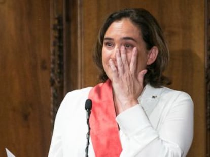 La Guardia Urbana de Barcelona cifró en 2.300 las personas que siguieron el sábado el pleno de investidura del Ayuntamiento de Barcelona desde la plaza Sant Jaume. En ese lugar había seguidores de la alcaldesa de la capital catalana, pero la mayoría de concentrados protestaba contra Colau exhibiendo pancartas y profiriendo gritos. Cuando Ada Colau salió del Consistorio a la plaza junto con el resto de concejales para dirigirse a la Generalitat, el ambiente se convirtió en un grito incontrolado contra la líder de Barcelona en Comú.