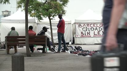 Los negocios de hostelería situados en los bajos del Museo de Historia de Cataluña han evitado la presencia de manteros delante de sus establecimientos saturando el espacio —y de paso, haciendo negocio— con terrazas. Los que están totalmente rodeados por la venta ilegal son las 21 paradas de la Asociación de Artesanos de Palau de Mar, una entidad que desde 1998 vende sus artesanías en el muelle del depósito. Han colgado, junto a sus paradas, pancartas que rezan: “Maremágnum y Colón protegidos. Palau de Mar abandonados”, “policía ausente”, “Barcelona, ciudad sin ley”.