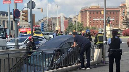 Una conductora ha encastrado su coche en una de las bocas del metro de la plaza de España de Barcelona, en un incidente que no ha causado heridos y del que se investigan las causas.