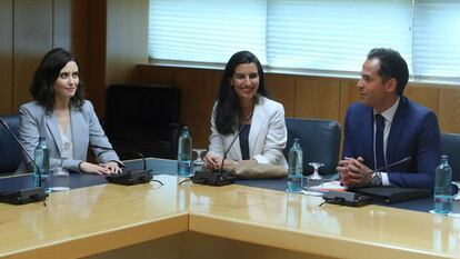 Vox envió una propuesta este miércoles a Ciudadanos con sus condiciones para desbloquear la investidura. El partido de Ignacio Aguado la rechazó al considerarla "un retroceso". Pero el texto fue modificado por el PP para rebajar las exigencias del partido de Rocío Monasterio y que fuese "perfectamente asumible" por los tres partidos. Vox le dio el visto bueno inmediatamente, con alguna modificación menor. Ciudadanos lleva analizando los dos folios desde ayer y el PP de Isabel Díaz Ayuso ha decidido mover ficha y hacer público el contenido a través de Twitter para presionar y lograr una investidura la próxima semana. Los populares han convocado también una reunión a tres para este viernes. Vox confirma su intención de asistir, pero Cs todavía no ha contestado.