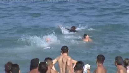 Dos policías saltaron entonces al agua y nadaron hasta darle alcance y lograron llevarlo de nuevo a tierra firme, donde le detuvieron por un delito de resistencia a la autoridad, ante una gran expectación del resto de bañistas.