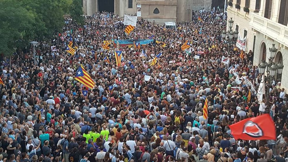 Decenas de manifestantes en #Sabadell protestando por detención de 9 #CDR . Entre ellos el delegado de la @govern en #Barcelona @julifernandez pic.twitter.com/U7SofOL1V6