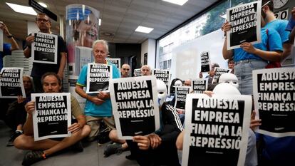 Activistas independentistas ocupan una sucursal de CaixaBank en Barcelona