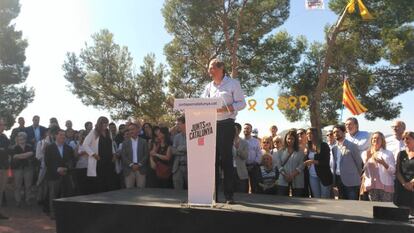 El presidente de la Generalitat, Quim Torra, ha cargado este domingo contra la operación policial que acabó con siete miembros de los CDR encarcelados y acusados de delitos de terrorismo, una operación que según Torra quiere “criminalizar” al independentismo. El president ha acusado al Estado de “construir un relato falso a cualquier precio”, y, respondiendo al Gobierno, que le pidió que condenase explícitamente la violencia, Torra ha restado toda credibilidad a la investigación: “No podemos condenar lo que no existe”. En un acto celebrado al lado de la prisión de Lledoners, donde se encuentran los políticos independentistas presos por el juicio del procés, Torra ha apelado al “voto útil” del independentismo ante los comicios del 10 de noviembre, en los que Junts per Catalunya se presentará con la diputada Laura Borràs como cara visible, y con la participación en las listas, aunque sin aclarar en qué orden, de los presos Jordi Sánchez, Josep Rull, Jordi Turull y Joaquim Forn.