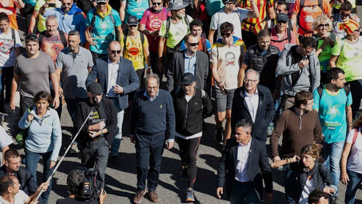 Torra se ha incorporado a la caminata de la ANC a la altura de Caldes de Malavella (Girona). "Es fantástico ver al pueblo movilizado y en marcha. Que nadie tenga duda de que este Gobierno estará al lado de la gente. Deseamos todo el éxito a esta manifestación pacífica", ha remarcado el president, que ha circunscrito sus alusiones a la protesta organizada por la entidad independentista. Torra ha celebrado, de hecho, que las llamadas "marchas por la libertad" -que salen desde cinco puntos del territorio catalán con dirección a Barcelona, adonde llegarán el viernes- se están desarrollando de forma "cívica" y "pacífica". "Como siempre hacemos los catalanes", ha remachado. Y ha insistido en que su presencia es una forma de mostrar "apoyo" a unas marchas "por el derecho de los catalanes a su autodeterminación".