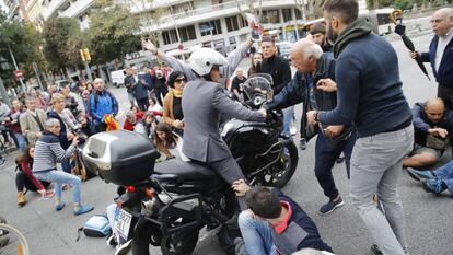 Un motorista arremete contra un grupo de manifestantes en Barcelona