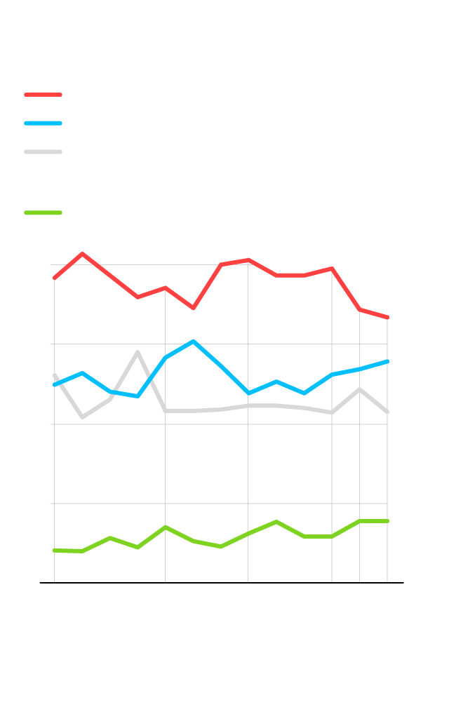 La encuesta también contiene otro dato que revela el descenso entre los catalanes que apoyan la secesión. Cuando se plantea la pregunta “cree usted que Cataluña debería ser” se ofrecen cuatro respuestas. La mayoritaria es “un Estado independiente” y la apoya el 33,6% de los encuestados de nacionalidad española y el 31,8% del total de entrevistados. Es el menor porcentaje desde el año 2012, cuando fue del 29%. Hace solo año y medio, en abril de 2018, esa opción la respaldaba el 40,8% de los catalanes.