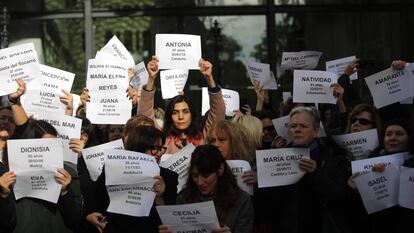 Mientras se celebraba el acto en el Ayuntamiento, en las puertas de Cibeles, cientos de personas se concentraban con carteles con los nombres de las 1.028 mujeres asesinadas desde 2003 por sus parejas o ex parejas. El acto de protesta, surgido en las redes sociales por iniciativa de la activista y artista Yolanda Domínguez, nació tras conocerse que Cibeles no tendría una declaración institucional contra la violencia machista. [Sigue leyendo aquí]