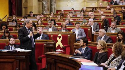 "¿Reconocemos Cataluña y España como dos entidades jurídicas, dos sujetos políticos que deciden libremente una solución política, como el Reino Unido y Escocia?”, se ha preguntado Torra cuando contestaba a una pregunta del líder del PSC, Miquel Iceta, sobre otro foro de diálogo —la mesa de partidos catalanes— que se ha de convocar a principio del mes que viene. Para el president, esa reunión debe servir para concretar lo que quiere decir “diálogo” con el Gobierno. “¿Esto significa hablar de Gobierno a Gobierno, que el presidente del Estado habla con el presidente de Cataluña y lo llama, sobre todo lo llama, para poder hablar?", ha insistido Torra.