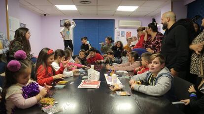 Con todo, los chiquillos que brujulean por la sala, ocupados en sus quehaceres navideños, han conocido otro barrio bien distinto. Sin plomo ni jeringuillas. “Les he pedido a los Reyes un patinete eléctrico”, confiesa Izan García, de 6 años. “Yo todavía no lo he decidido, porque hay muchas cosas que me gustan y tengo semanas para pensarlo”, agrega Aitana Serrano, de 8. Mientras ellos despliegan un rollo de espumillón dorado, García se despide de sus padres. Tiene que pasar la noche en el centro penitenciario de Alcalá Meco. Tardará una hora en llegar en coche. Los pequeños no se percatan de su ausencia. Ellos solo quieren regalos.