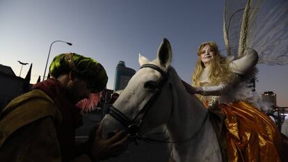 A paso lento marchaban las carrozas reales por San Juan de la Cruz, el primero de los puntos habilitados –desde hace unos años– para personas con movilidad reducida. Las comitivas de sus majestades lucían ropajes “típicos” de Persia, Armenia y Etiopía, “las patrias de Melchor, Gaspar y Baltasar”, que este año lucieron más ostentosos por decisión municipal. “Este año los reyes no irán con cortinas de baño"”, anunció el alcalde el viernes, afeando la estética de la cabalgata de 2016, la primera de la anterior alcaldesa, Manuela Carmena.