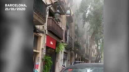 Los tres incidentes han tenido lugar en una distancia de un un kilómetro, en el centro de la ciudad. El primero de ellos es un incendio que se ha declarado a las tres de la tarde en la calle de Portal Nou. El tercer piso del número 25 de la vía ha empezado a arder. Los vecinos han visto a un hombre descolgándose por los balcones, con pantalón corto, y huir en una bicicleta En el interior de la vivienda, los Mossos han encontrado a otro hombre muerto y ahora investigan si el fuego ha sido provocado.