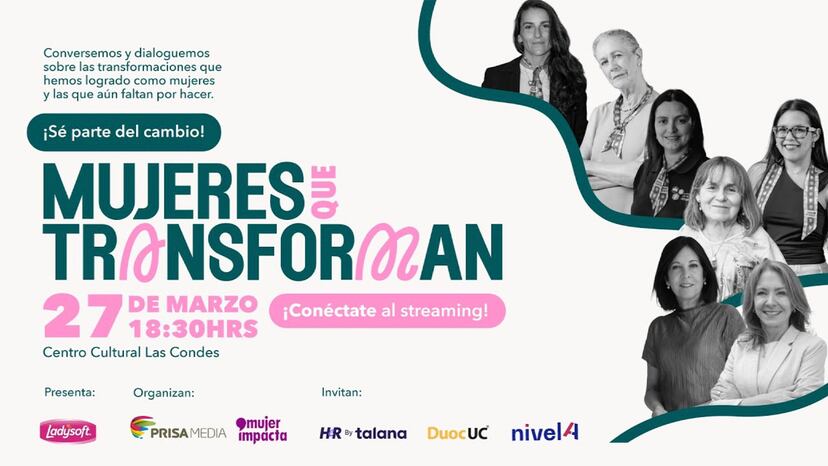 Este jueves, en la Corporación Cultural de Las Condes, en el sector oriente de Santiago de Chile, se realizó el evento Mujeres que Transforman, organizado por PRISA Media Chile y Mujer Impacta, donde destacadas figuras femeninas compartieron sus historias, proyectos y visiones sobre el cambio social en el país sudamericano. La reunión fue conducida por la periodista María Elena Dressel, voz de Radio Concierto, y contó con un panel de influyentes mujeres conformado por: la presidenta de la CPC, Susana Jiménez...