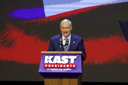 José Antonio Kast habla a sus seguidores después de los resultados electorales en Santiago.CRISTIAN SOTO QUIROZEl candidato ultraconservador, representante de las derechas, obtiene un 58,1%. Su contrincante, Jeannette Jara, militante comunista, abanderada de la izquierda, alcanza un 41,8%.SOFIA YANJARIEl triunfo supone la llegada del primer dirigente que no ha tomado distancia de la dictadura de Augusto Pinochet (1973-1990) a La Moneda, donde sucederá a Gabriel Boric, referente de una nueva izquierda, que dejará el cargo con 40 años.SOFIA YANJARIJeannette Jara da un discurso a sus seguidores para reconocer el triunfo de José Antonio Kast en las elecciones presidenciales de Chile.CRISTOBAL VENEGASSimpatizantes de Kast celebran su victoria en Santiago.CRISTIAN SOTO QUIROZGabriel Boric en llamada telefónica con José Antonio Kast tras los resultados electorales.marcelo segura (presidencia de chile)Simpatizantes de Kast celebran su victoria.CRISTIAN SOTO QUIROZLos primeros votantes acuden a la Estación Mapocho.Enea LebrunUn vocal entrega la boleta un votante en la Estación Mapocho, en Santiago durante la jornada electoral de este domingo.Enea LebrunUn votante ingresa la boleta en la urna durante la segunda vuelta de las eleciones presidenciales.Enea LebrunEsta elección, se realiza con voto obligatorio para todos los chilenos habilitados en el padrón electoral.Cristobal VenegasLas mesas de votación estarán abiertas desde las 8:00 hasta las 18:00 horas.Cristobal VenegasUna mujer acude en silla de ruedas a las casillas del Campus Oriente de de la Pontificia Universidad Católica de Chile.SOFIA YANJARIFuncionarios de mesa, preparan el material en espera de la apertura y el inicio de las votaciones.Cristobal VenegasJosé Antonio Kast, es recibido por simpatizantes a las afueras del en el Colegio María Ana Mogas, esta mañana.Cristian Soto QuirozEl candidato presidencial del Partido Republicano, emite su voto acompañado de su esposa María Pía Adriasola, en el Colegio María Ana Mogas.
