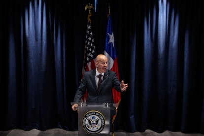 El exagente de la Patrulla Fronteriza estadounidense (entre 1997 y 2023) y exdirigente sindical ha dicho que el presidente Trump lo envió a Chile a hacer crecer la economía y limitar el crimen. Su agenda está saturada de reuniones empresariales y ya acumula algunos encuentros con los responsables de la seguridad local. Un mensaje que ha reiterado en ruedas de prensa y entrevistas, es que espera con ansias la llegada de Kast a La Moneda, una Administración que todavía no comienza, pero con la que ya está trabajando.