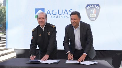 El acuerdo, que tiene como objetivo dotar a las 24 compañías de bomberos de la región metropolitana de mayores recursos, potenciará también la mantención de grifos junto con el desarrollo de capacitaciones y acciones conjuntas, fue concretado en la Plaza Gaudí del Edificio Corporativo de Aguas Andinas, en una ceremonia encabezada por el gerente general de la compañía de servicios medioambientales, José Sáez y por Juan Carlos Field, presidente nacional de bomberos.