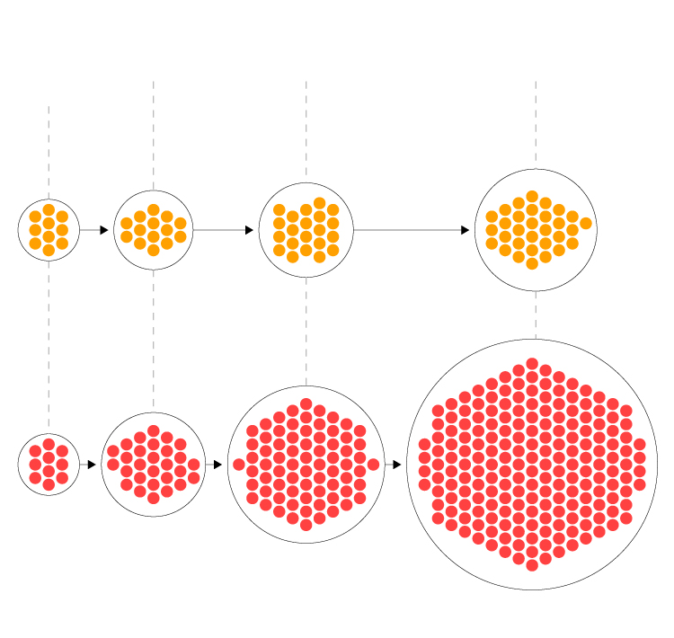 El nuevo virus parece capaz de infectar a millones de personas. La gripe común, con su número reproductivo de 1,3, causó el año pasado 20 o 30 millones de enfermos en EEUU, según los Centros para el Control y Prevención de Enfermedades (CDC), lo que supone el 7% de la población. En España, contando solo casos leves en atención primaria, el sistema de vigilancia de la gripe estima medio millón de contagios. Su crecimiento tiene potencial para ser rapidísimo. Si partimos de 20 enfermos de cada enfermedad y asumimos un ciclo de contagios de siete días, pasadas 12 semanas habría 466 infectados de gripe común y más de 30.000 de Covid-19.