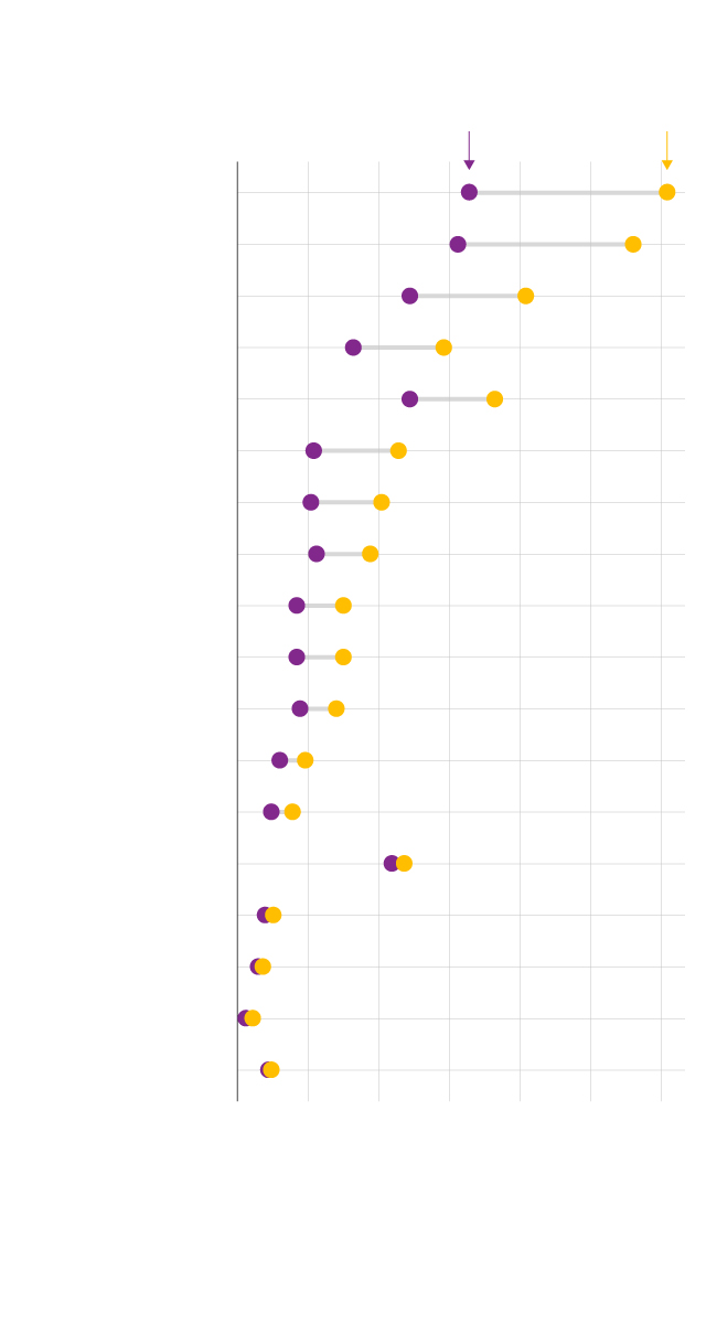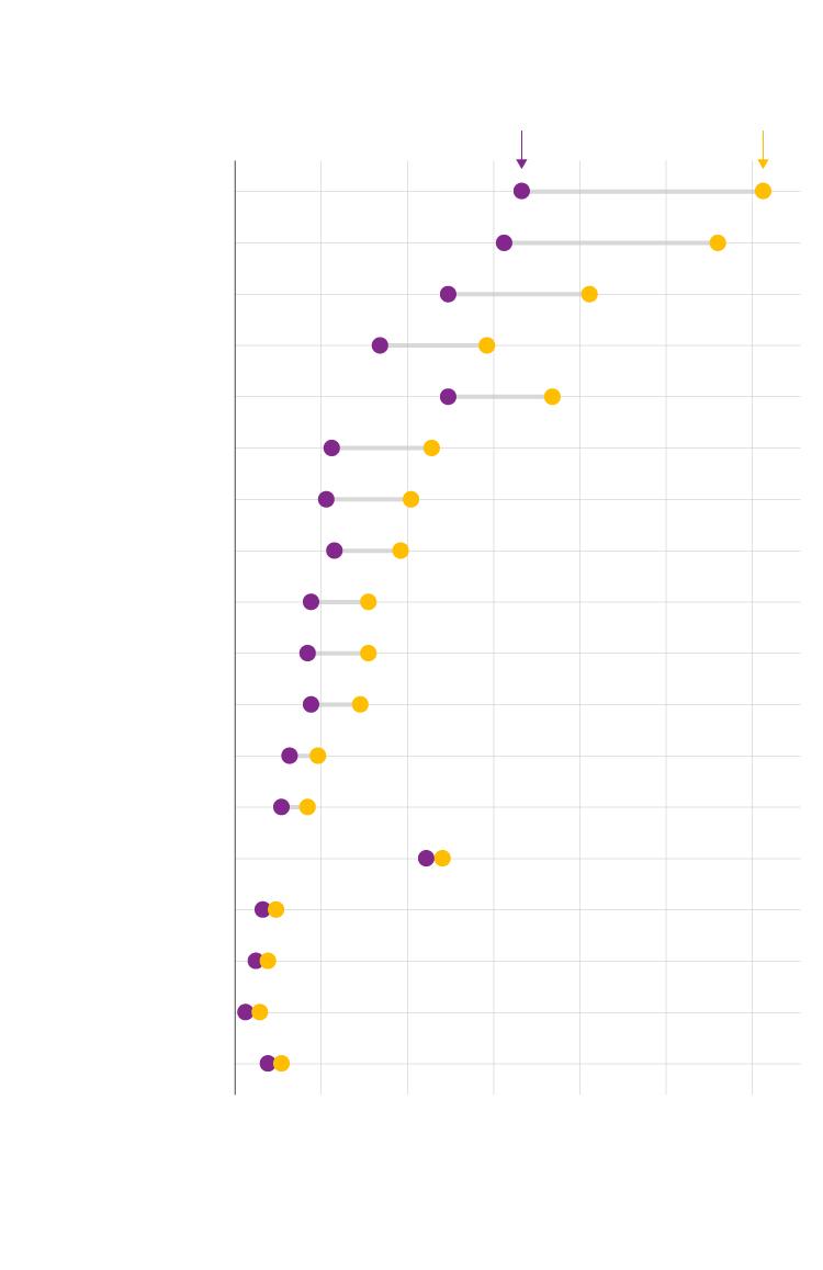 Muertes de hombres (por cada 100.000) sobre muertes de mujeres (por cada 100.000).