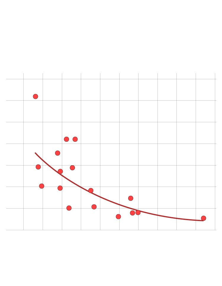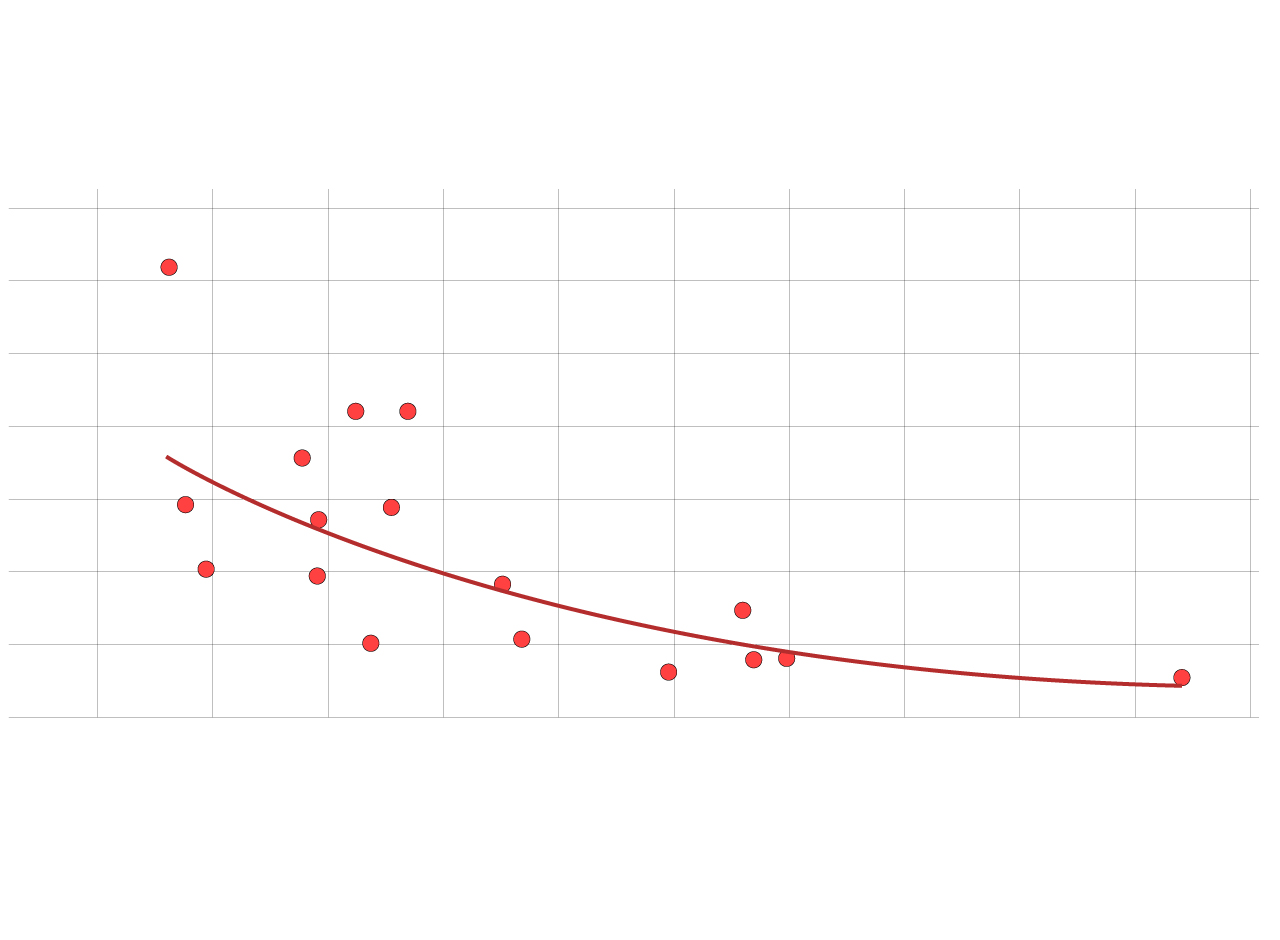 Relación entre el nº de casos acumulados por cada 100.000 habitantes y la temperatura promedio en cada comunidad autónoma en los 14 días anteriores, a fecha del 5 de abril