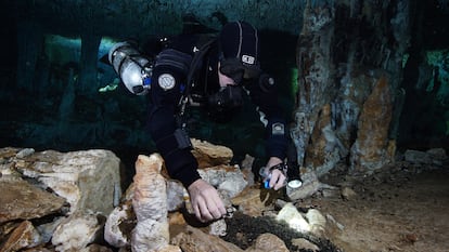 El trabajo de prospección en el mundo de los primeros pobladores de América, conservado bajo el agua en las cuevas kársticas de Quintana Roo, acaba de comenzar. Samuel Meacham, fundador del Centro Investigador del Sistema Acuífero de Quintana Roo A.C. (Cindaq), ha sido uno de los líderes del equipo de buceadores que han servido de extensión a los equipos de arqueólogos o antropólogos necesarios para comprender estos yacimientos particulares. “En cada buceo existe la posibilidad de encontrar algo nuevo. Jamás en mis sueños más locos pensé que íbamos a encontrar una mina prehistórica. Ni puedo imaginar lo que podremos ver en el próximo año”, plantea. La puerta al pasado abierta en los cenotes mexicanos seguirá desvelando los secretos de Naia y la sociedad en la que vivió.