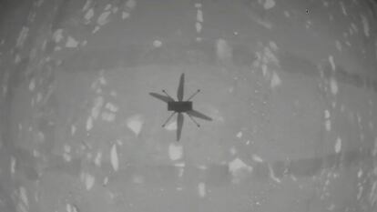 El dron Ingenuity de la NASA se ha convertido en el primer artefacto de este tipo en volar sobre la superficie de otro planeta. El equipo de la misión ha celebrado hoy con gritos y aplausos el primer vuelo exitoso de este artefacto de menos de dos kilos y propulsado por una hélice especialmente diseñada para poder funcionar en el fino aire marciano, un 99% menos denso que el de la Tierra.