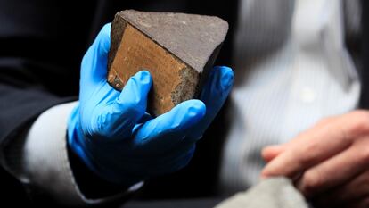 El hombre que puso a la venta la pieza, residente en la localidad guipuzcoana de Hernani, está acusado de un presunto delito de apropiación indebida, según explica el capitán Marcos Santos, del Servicio de Protección de la Naturaleza de la Guardia Civil. El vendedor, identificado como Juan Carlos M., llegó incluso a hablar con el Diario de León a comienzos de octubre, asegurando que es un trabajador de una empresa de mudanzas que se encontró el meteorito entre las pertenencias abandonadas del ingeniero industrial Manuel Laborde Werlinden, uno de los fundadores de la Sociedad de Ciencias Aranzadi, fallecido en 1993. El capitán afirma que esa versión no está acreditada. Hace un año, el meteorito ya estuvo a la venta, por 38.000 euros, según adelantó entonces otro diario leonés, La Nueva Crónica. “La investigación sigue abierta”, subraya el capitán.