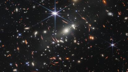 La imagen publicada el lunes es la más lejana y precisa que se ha obtenido del universo profundo en el espectro infrarrojo, según la NASA. En ella se aprecia SMACS 0723, una región del cielo visible desde el hemisferio sur donde destaca un gran cúmulo de galaxias a 4.600 millones de años luz de la Tierra. El empuje gravitatorio de este cúmulo deforma el espacio y el tiempo y funciona como una lente que magnifica la luz de galaxias mucho más lejanas y tenues que están detrás. La imagen del Webb demuestra que el instrumento puede captar este fenómeno y perseguir uno de sus principales objetivos: ver más allá en el universo que ningún otro telescopio, hasta captar la luz de las primeras estrellas nacidas después del Big Bang, el estallido con el que nació el universo hace 13.700 millones de años.