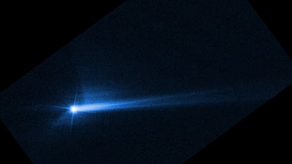 La colisión de esta pequeña sonda sucedió el 27 de septiembre y fue seguida casi en directo desde la Tierra. Las últimas imágenes enviadas por las cámaras de DART antes de estamparse contra Dimorfo desvelaron que su superficie era muy irregular y pedregosa. Esto parecía indicar que este cuerpo es lo que los astrofísicos llaman “una pila de escombros”; un amasijo de rocas y polvo con poca densidad. Esto implicaba que a pesar de su pequeño tamaño, el impacto levantaría una nube de material que deberían poder observar decenas de telescopios terrestres que seguían la evolución del choque. Y así fue.