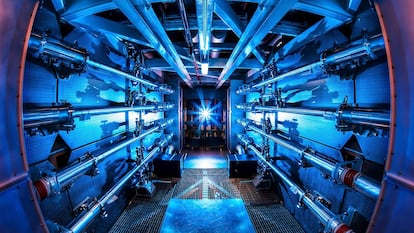 Los investigadores han conseguido, básicamente, una pequeña reacción que proporciona más energía de la que consume. Los experimentos se han llevado a cabo en el Laboratorio Nacional Lawrence Livermore, que alberga la Instalación Nacional de Ignición (NIF son sus siglas en inglés). Se trata de un ingenio inaugurado en 2009 que emplea el láser más grande del mundo. Dirigido a una diminuta bola de plasma de hidrógeno, genera condiciones que imitan las explosiones del armamento nuclear. El gran reto para generar energía mediante fusión es que la obtenida sea mayor que la invertida en el esfuerzo para provocar esa reacción atómica: en este caso, la ganancia es del 50%. Los resultados se obtuvieron la semana pasada, el 5 de diciembre, cuando 192 haces de láser se concentran en un punto del tamaño de un “grano de pimienta”, generando fugazmente las condiciones de una estrella a tres millones de grados Celsius, aclaró Jill Hruby, vicesecretaria de Seguridad Nuclear de Estados Unidos.