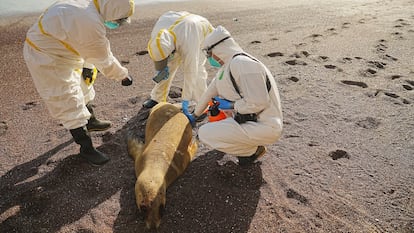 El mismo equipo de científicos peruanos y argentinos ya alertó el 19 de enero en la revista Science de que la llegada del virus de la gripe aviar amenazaba las aves protegidas en Sudamérica, incluido el cóndor andino. Los investigadores han decidido ahora publicar de manera urgente el primer borrador de su estudio sobre los lobos marinos, sin esperar a completarlo. “Queríamos dar la alerta lo antes posible por lo preocupante de la situación. Es el primer caso de mortalidad masiva de mamíferos salvajes en Sudamérica y podría ser el primer evento de transmisión intraespecie en mamíferos silvestres en el mundo”, explica Lambertucci. El biólogo argentino recalca que necesitarán semanas para realizar los estudios genéticos del virus esenciales para confirmar o descartar sus hipótesis.