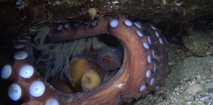 Así, durante un año entero, transcurrirá la vida de la pulpa (”así, en femenino, es como las llamamos nosotros”, defiende Roura). Almacenando el material fecundador en espermatecas, y alimentándolo, dentro de su glándula oviductal, hasta que la hembra encuentra apartamento para fundar su familia monoparental y está preparada para la puesta. Su única puesta. Una maternidad terminal tras la que ya no volverá a comer y acabará muriendo, consumida, extenuada, en unos cinco meses (entre junio y octubre) desde que acondicionó su refugio, después de ver nacer a todos sus hijos. Por primera vez, un vídeo registra el coito y todo el proceso de la reproducción del Octopus vulgaris en estado salvaje. Las imágenes grabadas en la ría de Vigo son, como explica Roura, el fruto de “ocho años de inmersión, resumidos en cinco minutos”. Él se encargó de la parte científica, pero estuvo acompañado en el proyecto por la submarinista y también investigadora Jade Irisarri, y por el multipremiado realizador de documentales submarinos, buceador y químico José Irisarri.