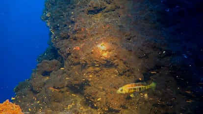 Peces junto a las formaciones volcánicas submarinas observadas por los científicos en Canarias.Foto: IGME-CSIC | Vídeo: EPV